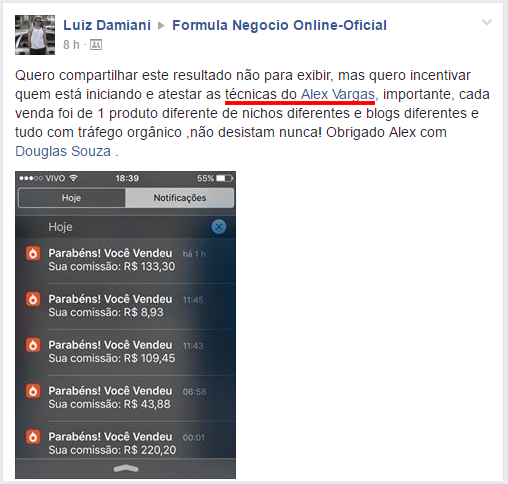 Depoimentos - Veja esses depoimentos de alunos do curso Fórmula Negócio Online e sobre o que disseram do curso: