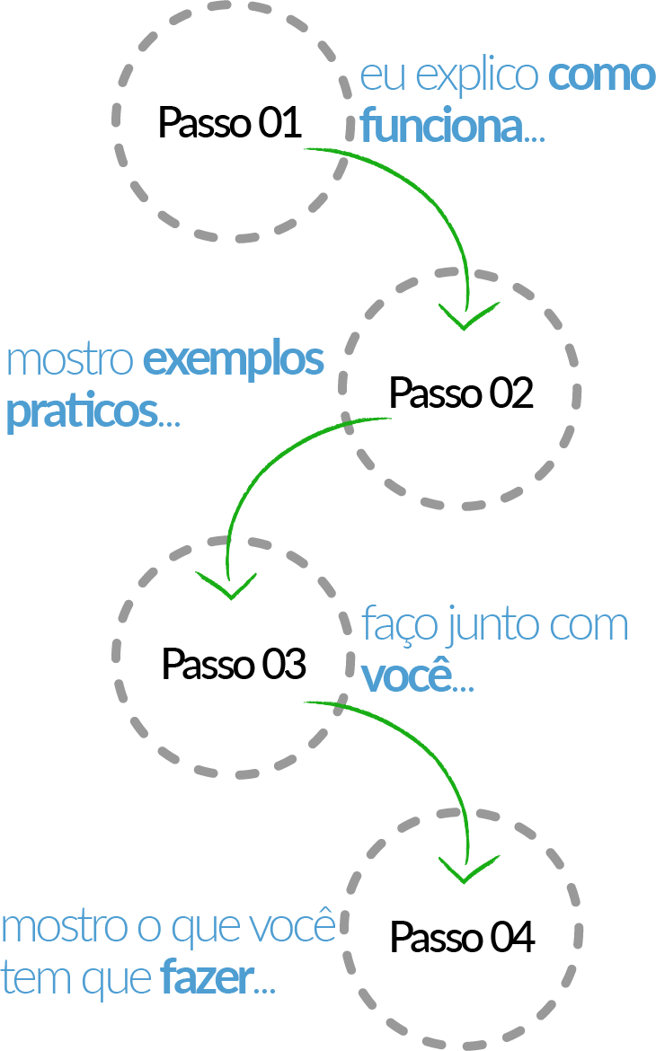 Onde eu literalmente "te pega pela mão" e te guia durante todo o processo, passo a passo mostrando cada etapa nos mínimos detalhes.