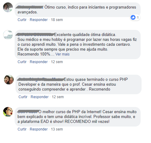Depoimentos - Aqui estão alguns depoimentos de alunos do Curso De PHP Developer, confira: